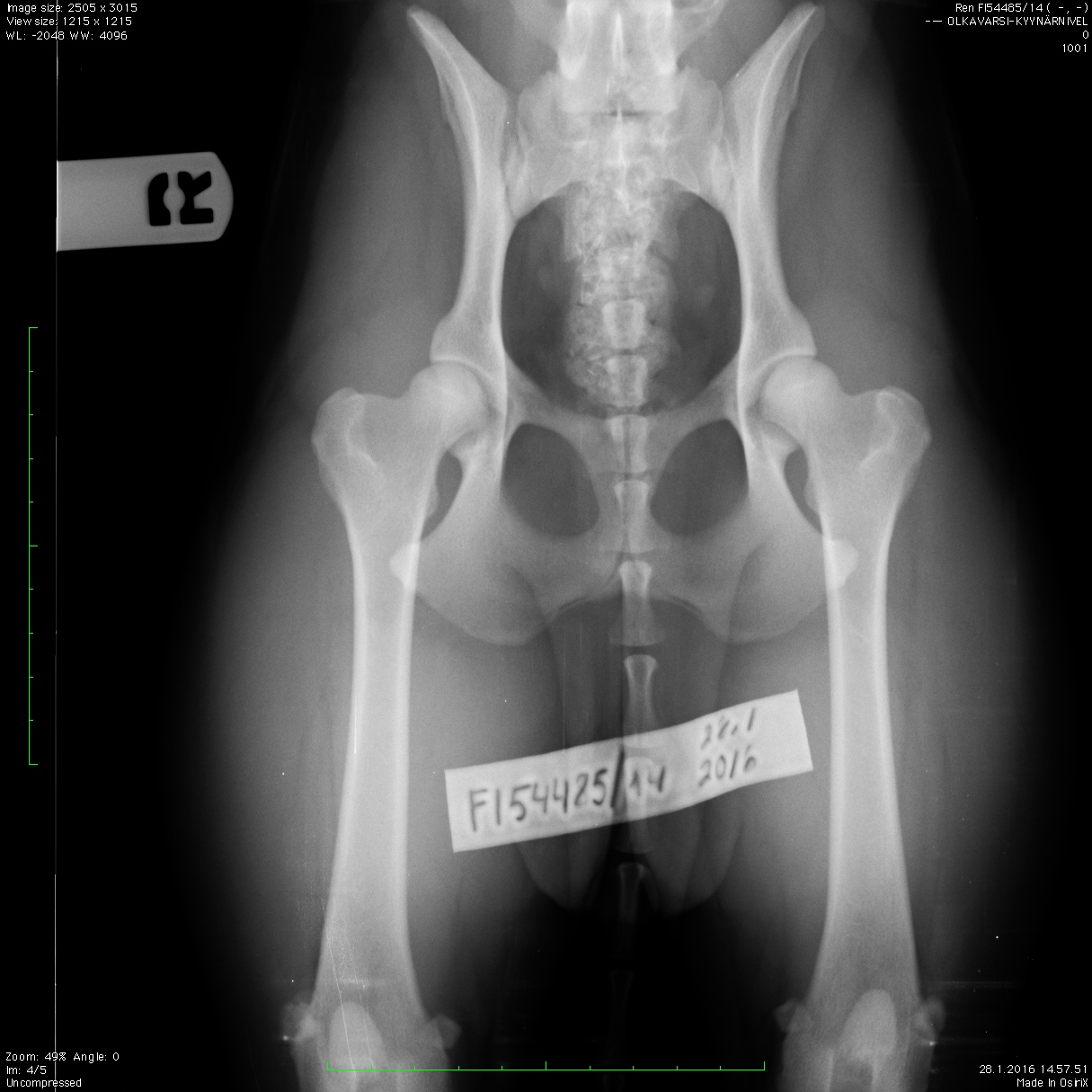 Tämän postauksen pääaihe ei kuitenkaan ole agility tai mitkään muutkaan treenit tai kisat, vaan Renin luustokuvaukset. Salla-kasvattaja oli järkännyt pienimuotoisen kimppatarkin Lahden Univetiin torstaina 28.1, jonne osallistui Renin lisäksi Flinja ja Nana -siskot. Melkoista säätöä oli kyllä asemalla - Nana, joka oli muutenkin joutunut ottamaan uuden annoksen rauhoitetta sen taisteltua niin kovasti vastaan, ehti saada jo herätteen ennen kuin muistettiin Renin jo ollessa kuvauspöydällä, että ainiin, Nanalta piti ottaa myös kuvat olista. Ren joutui myös toisen kerran tauolle, koska tilaa tarvittiin jollekin leikkauspotilaalle (tms). Lääkäriltä ei saatu arvioiksi kuin ettei kuvissa näkynyt mitään hälyttävää, mutta onneksi Kennelliiton tuomio tuli jo seuraavalla viikolla, vaikka lausuntojenkin kanssa oli säätämistä: